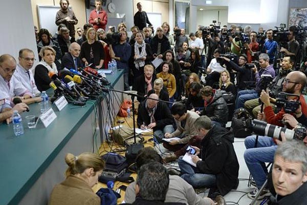 یکی از پزشکان بیمارستان گرونوبل در حال پاسخگویی در خصوص آخرین وضعیت شوماخر