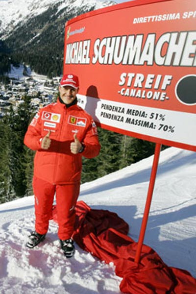 میشائیل شوماخر در حال اسکی در پیست مودنا ایتالیا