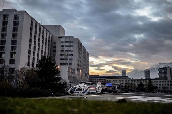 ورودی بیمارستان گرونوبل در فرانسه. جایی که شوماخر در آن بستری است