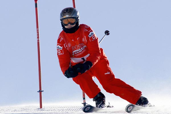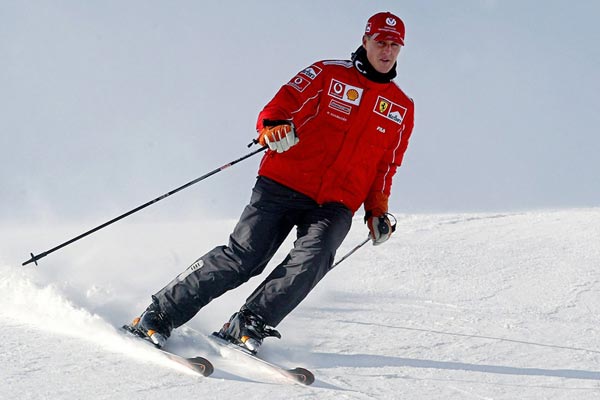 ژانویه سال 2006 شوماخر در حال اسکی اسلالوم