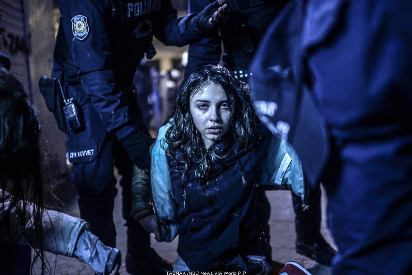 دخترک اهل استانبول، در جریان درگیریهای پلیس ضد شورش با معترضان به برخورد خشن و مرگبار نیروهای انتظامی با تظاهرکنندگان دستگیر شده است./Bulent Kilic / AFP