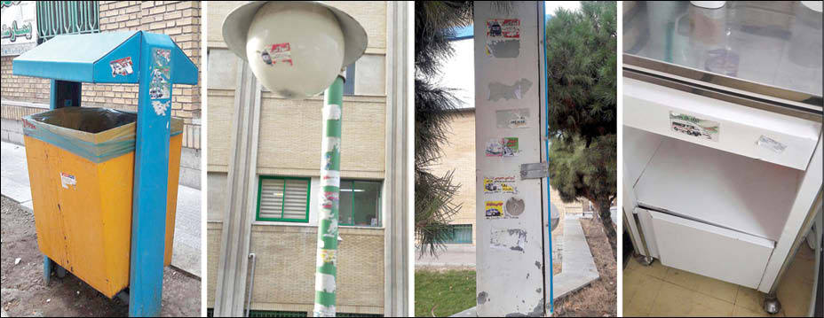 به دیوار، نرده های در ورودی، سنگ فرش های پیاده رو و حتی پایه های تابلوی توقف ممنوع اطراف بیمارستان هم رحم نکرده اند. تقریبا هرجایی که سر بگردانی با برچسب های تبلیغاتی آمبولانس های خصوصی مواجه می شوی؛ شرکت هایی که اغلبشان غیرمجاز هستند و آزادانه به فعالیت می پردازند.