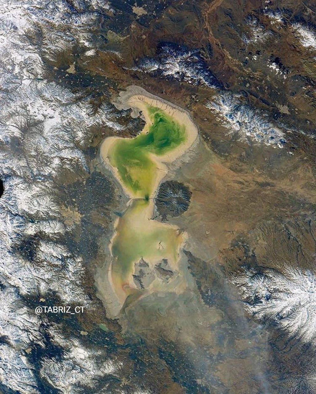 در عکس زیر تصویر هوایی از وضعیت این روزهای دریاچه ارومیه را می بینید که توسط یک فضانورد روسی گرفته شده است.