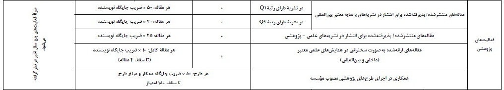 ضریب حاصل از تعداد و ترتیب نویسندگان در محاسبه امتیاز هر مقاله بر اساس آیین‌نامه ارتقای مرتبه علمی اعضای هیات علمی (مصوب وزارت علوم) محاسبه می‌شود. همچنین در محاسبه امتیاز طرح‌های پژوهشی تعداد و ترتیب همکاران و مبلغ طرح در نظر گرفته می‌شود.