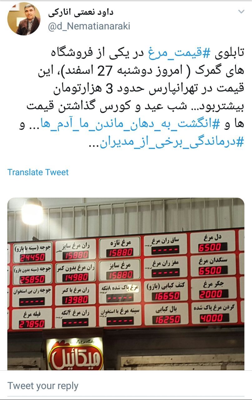 تابلوی قیمت مرغ در منطقه گمرک تهران + عکس