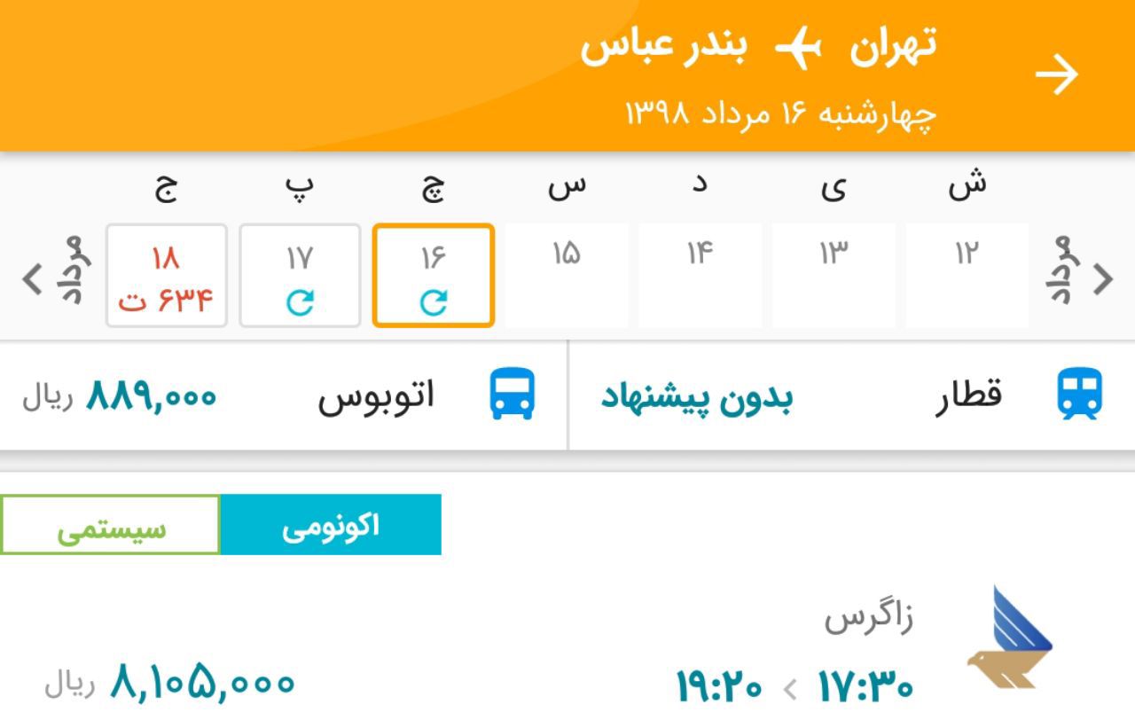 پرواز تهران - بندرعباس؛ امروز: ۸۰۰ هزارتومان+ عکس