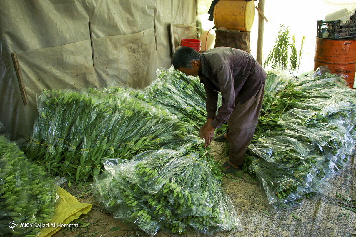 فصل تابستان موعد برداشت گل‌های لیلیوم است و این گل گران قیمت در منطقه آبسرد دماوند کشت و برداشت می‌شود. /سجاد علی همتی